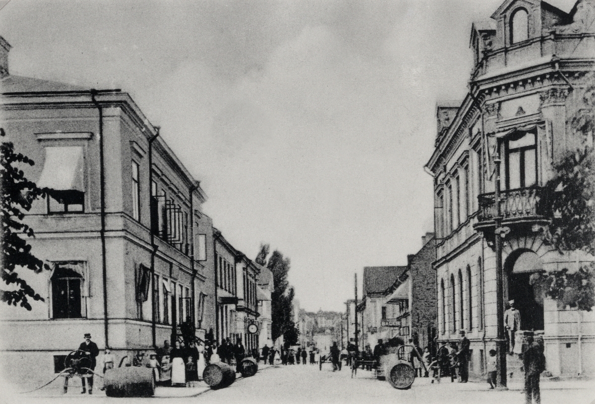 Hörnet Klostergatan - Norra Järnvägsgatan, Växjö. Tidigt 1900-tal.