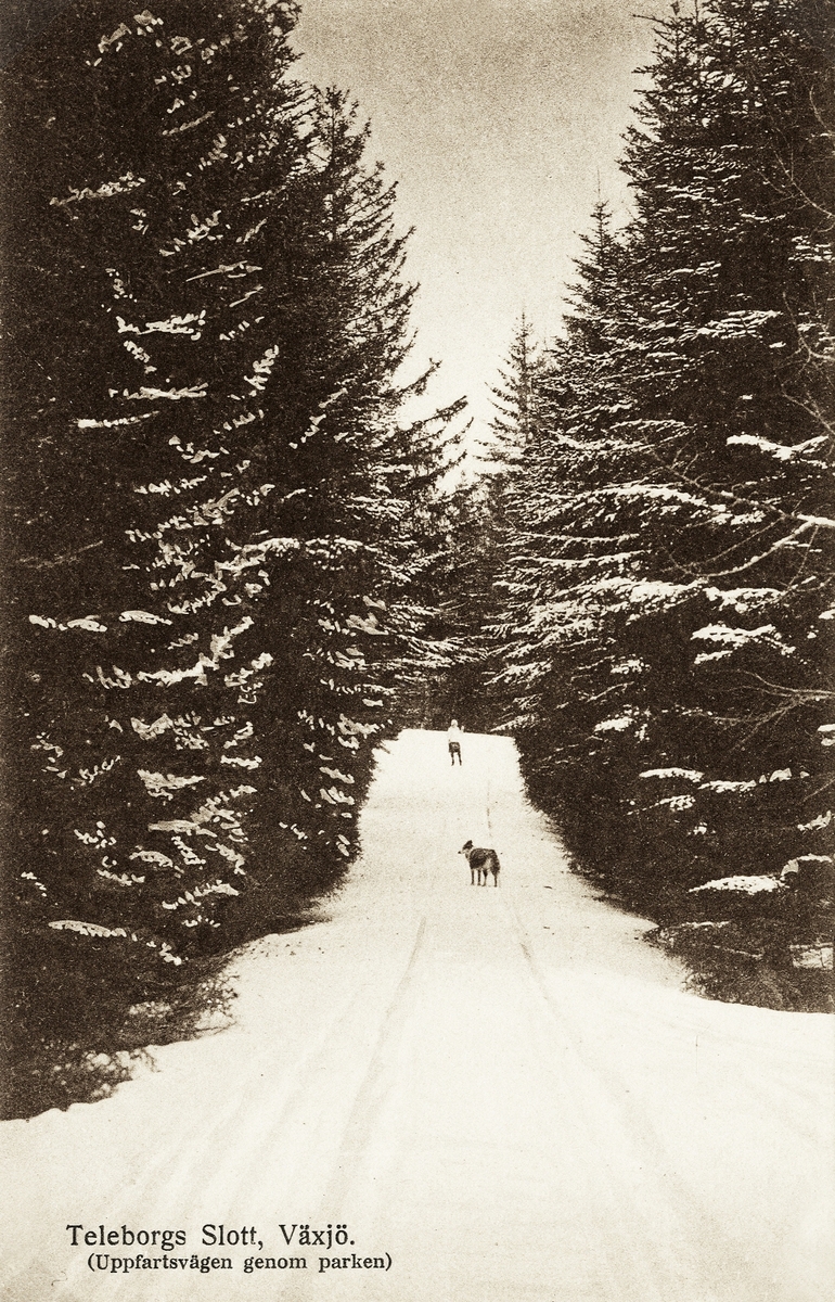 Teleborgs slott, Växjö. Uppfartsvägen genom parken, ca 1910.