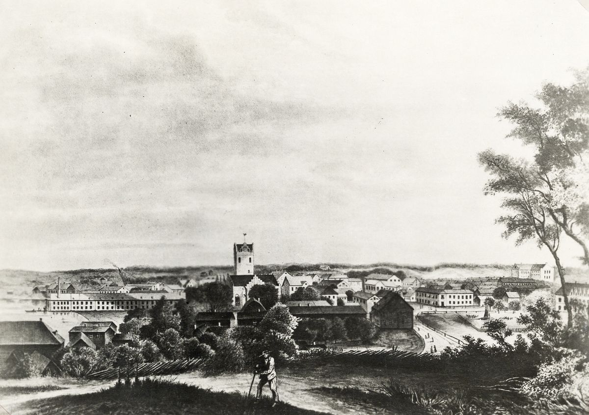 Växjö, vy från öster, ca 1850. Foto efter oljemålning.