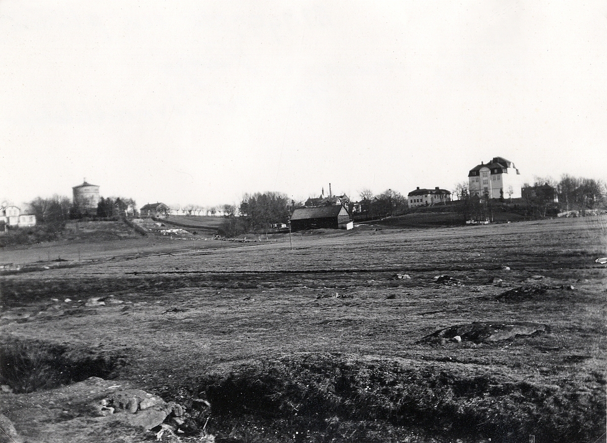 Spetsamossen, Växjö, ca 1912-14, mot nordost. Till vänster syns Ringsbergs gård, följt av vattentornet, Hovsbergs gård, bryggeriet på Kristineberg och därefter dåv. seminariet (nuvarande Ringsbergsskolan).