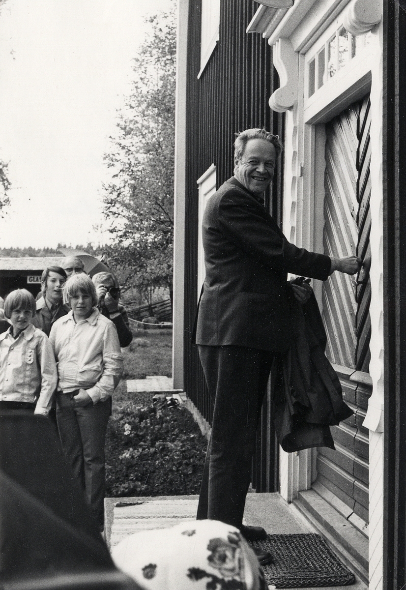 Jan Erik Anderbjörk öppnar hembygdsgården i Skatelöv, efter dess invigning.