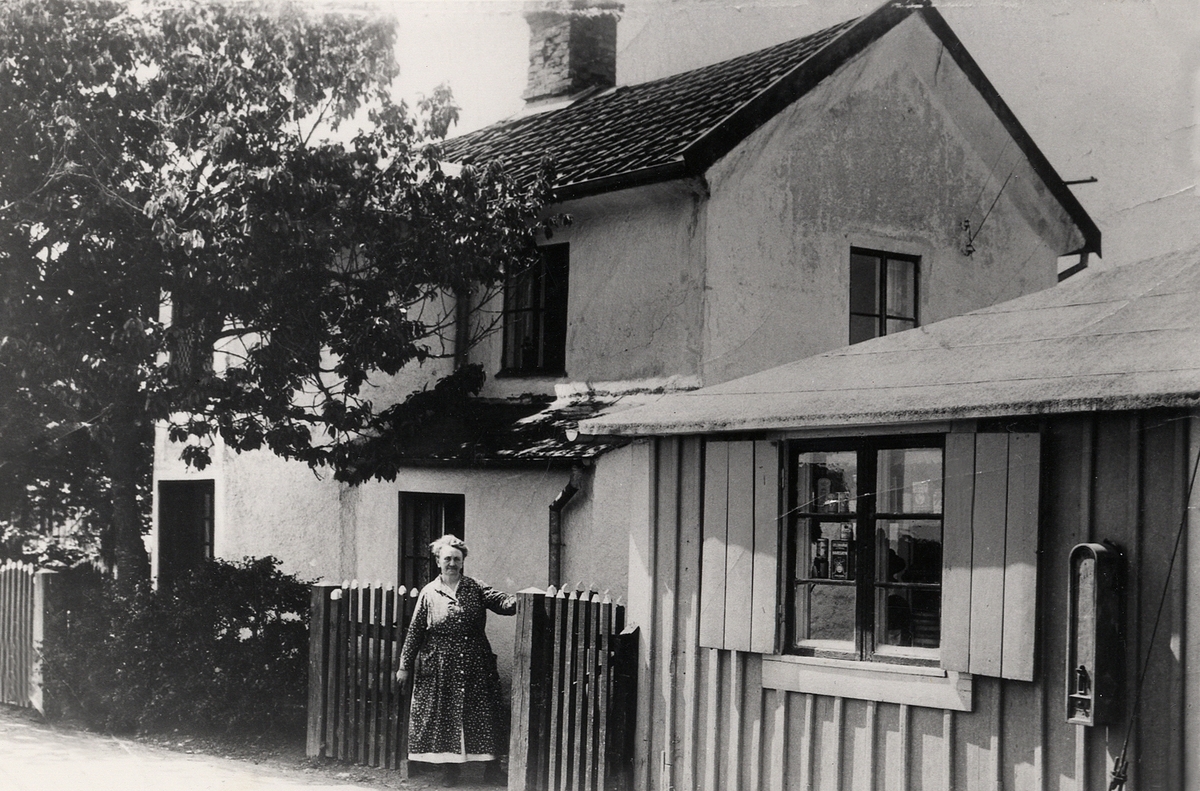 Gamla Norr, Växjö, ca 1925-1930. Fru Josefine Engdalsson (?) står framför sitt hus.