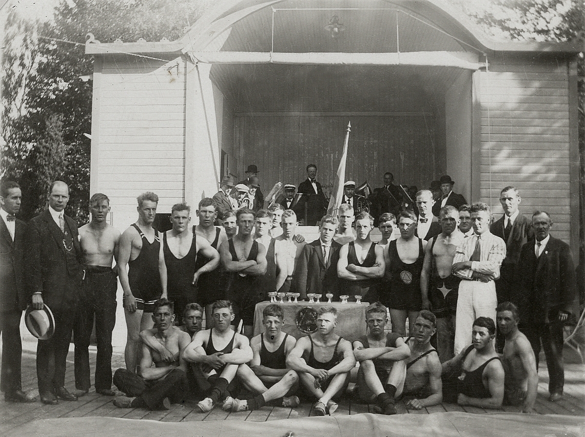 Växjö brottarklubb i Ronneby Folkpark, ca 1925.