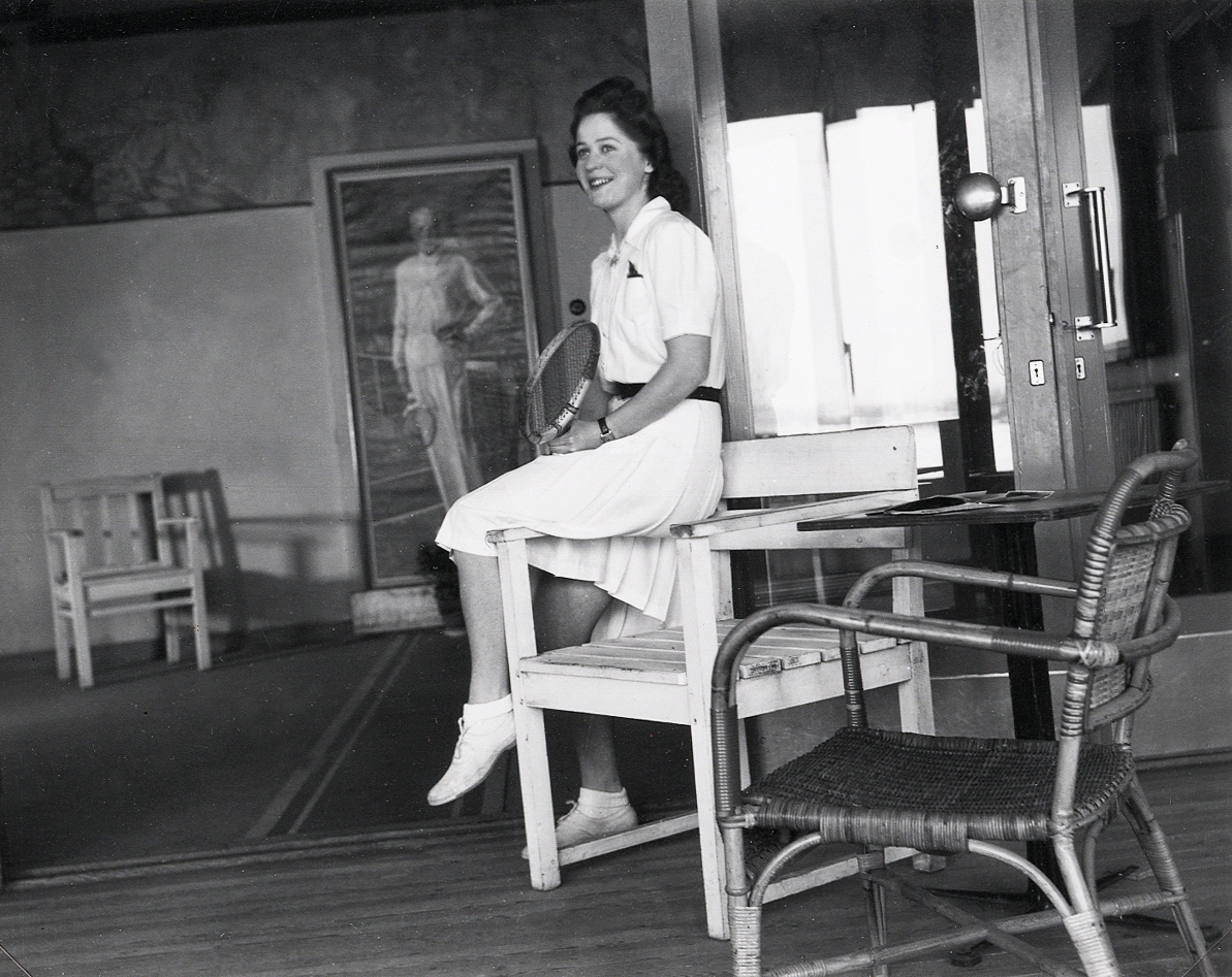 Titel: Gymnasten Gunnel Johansson i Tennishallen, Växjö. 1948