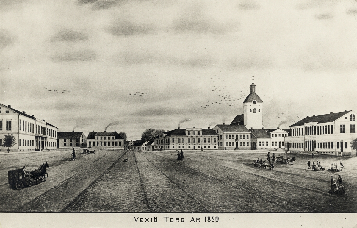 "Vexiö Torg År 1850", Stortorget, Växjö mot öster.