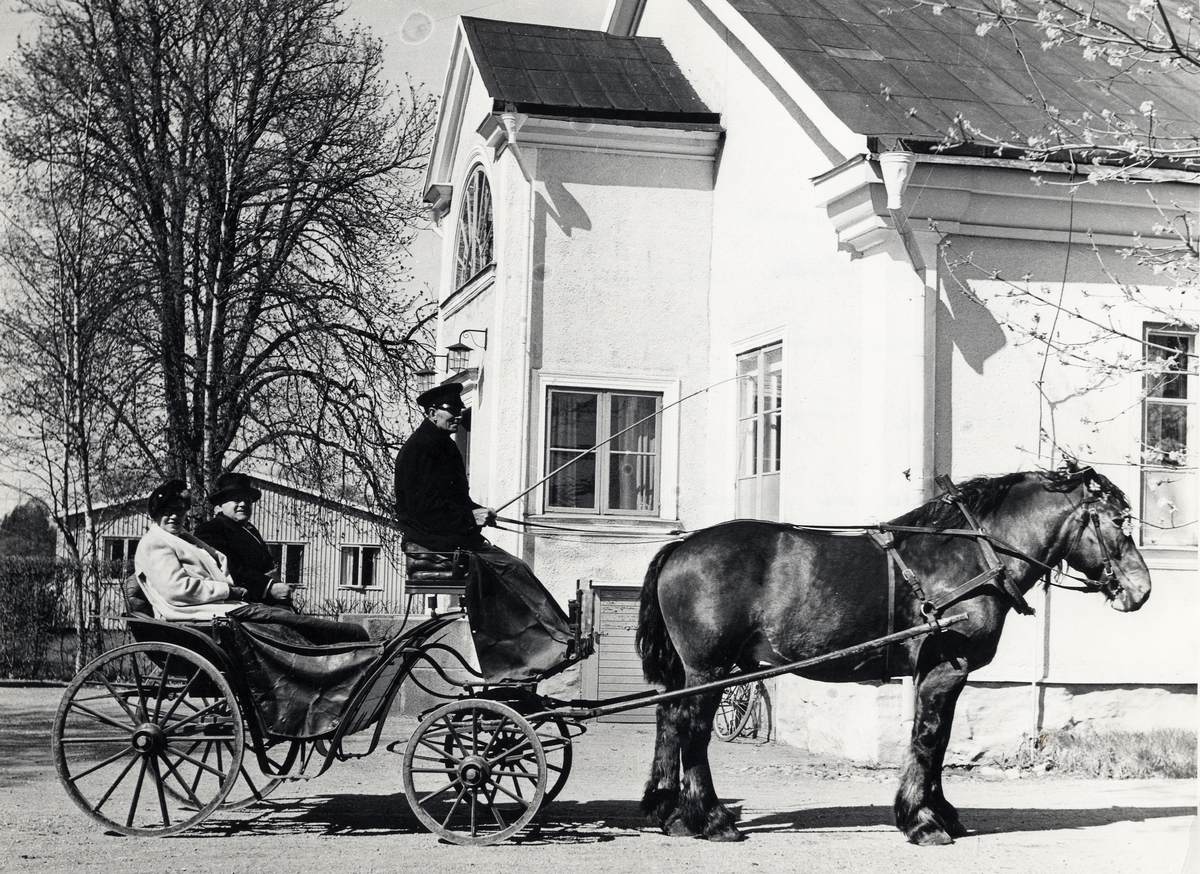Domkyrkokomminister Gunnar Stenvall med fru på väg med häst och vagn från gudstjänst