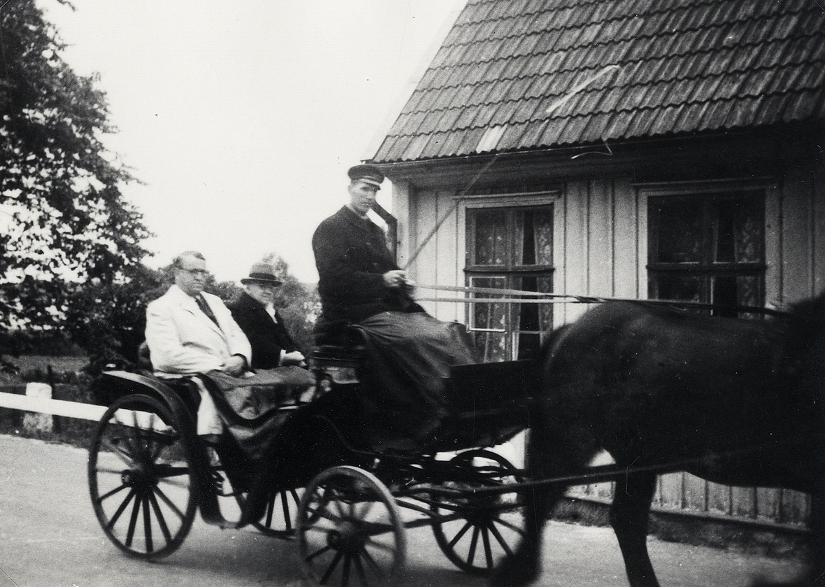 Ekipage vid Björklundska gården utmed Ingelstadsvägen, Växjö ca 1950. Kantor Lundin och domkyrkokomminister