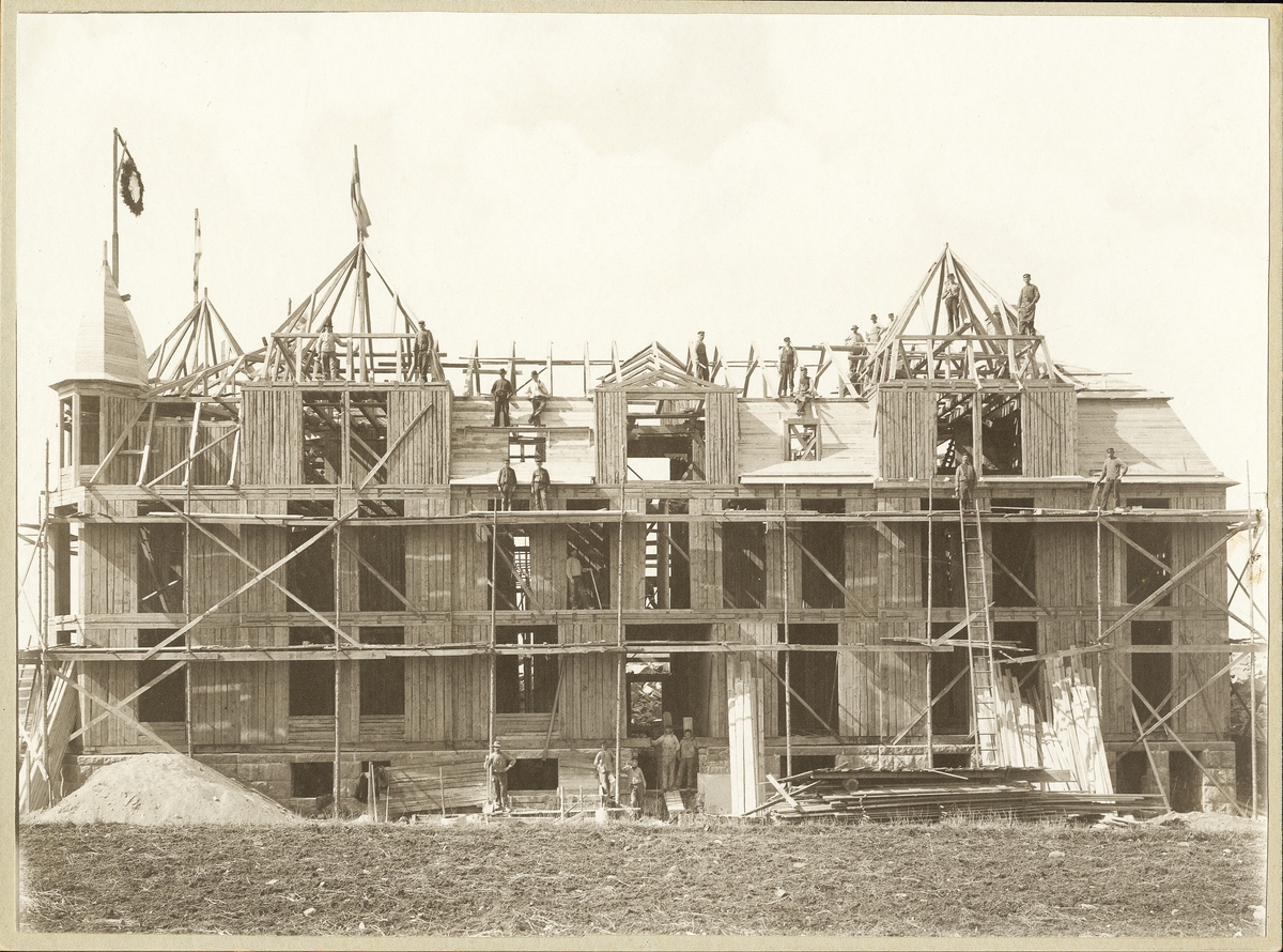 Nytt bostadshus (med taklagskrans) i hörnet Södra Esplanaden - Värendsgatan (?) (Skytten 3), Växjö, ca 1910.