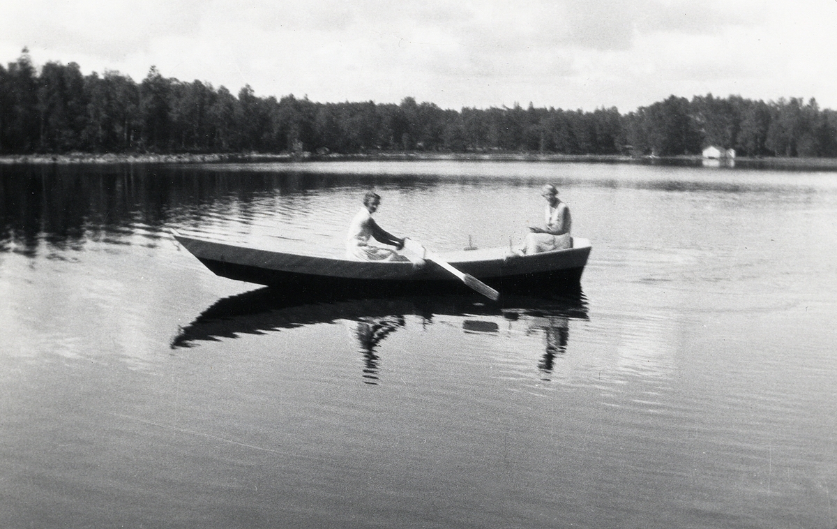 Helgasjön, ca 1925. Systrarna Wrangel på roddtur.