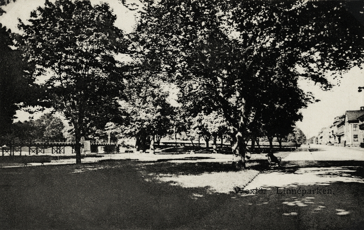 Linnéparken med järnvägsbron, Växjö, 1910-tal.