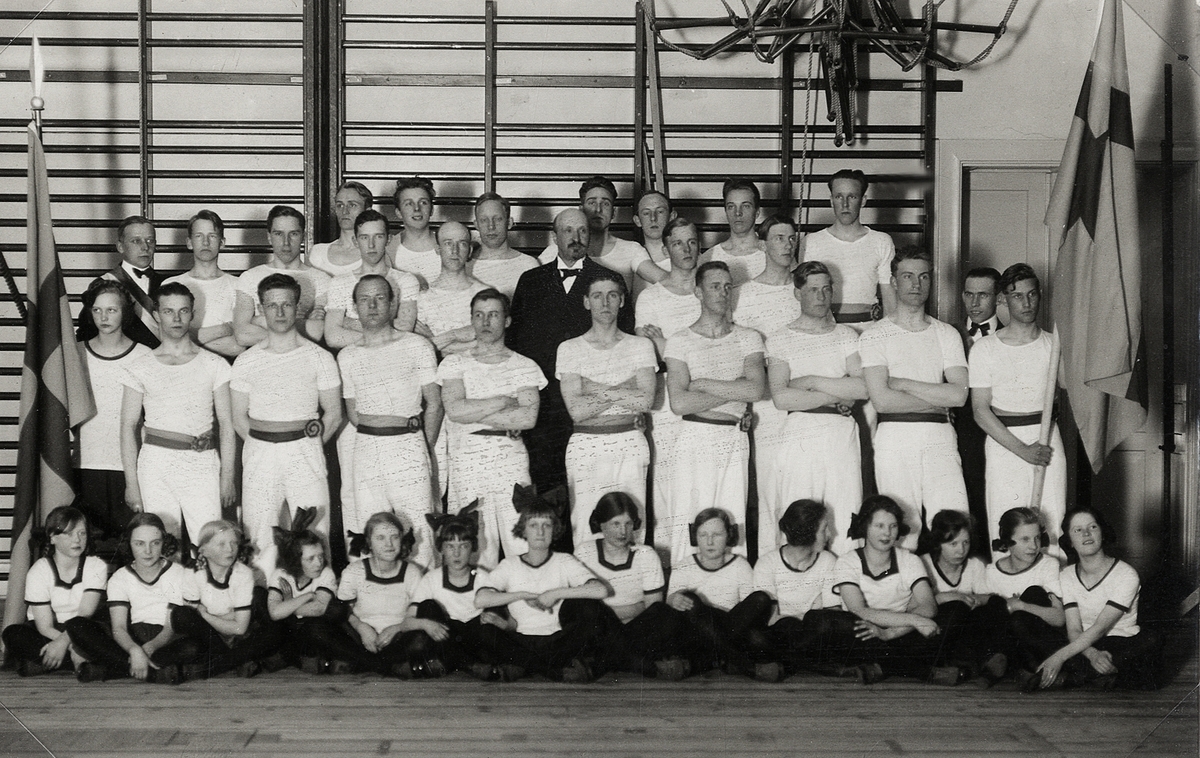 Gymnastikdirektör Nils Danckwardt med gymnaster på Ringsbergsskolan i Växjö, 1925.
