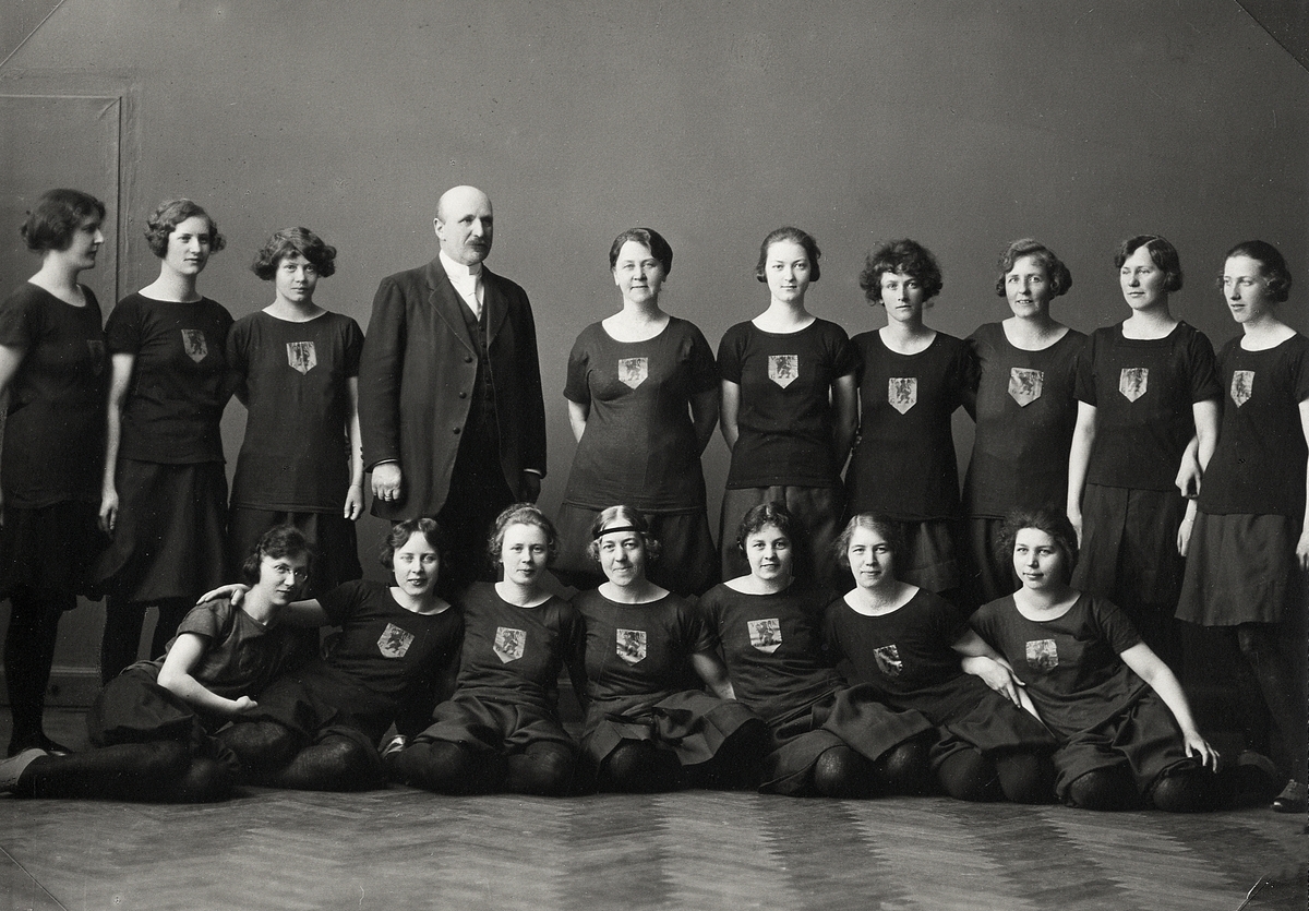 Gymnastikdirektör Nils Danckwardt med kvinnliga gymnaster, Växjö 1923.