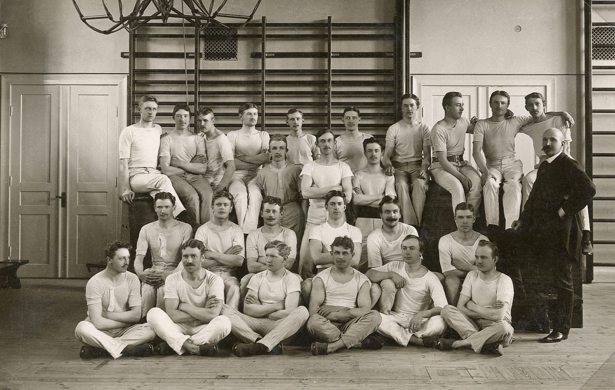 Gymnastiktrupp från Växjö, 1910-tal. Gymnastikdirektör Nils Danckwardt leder gruppen.