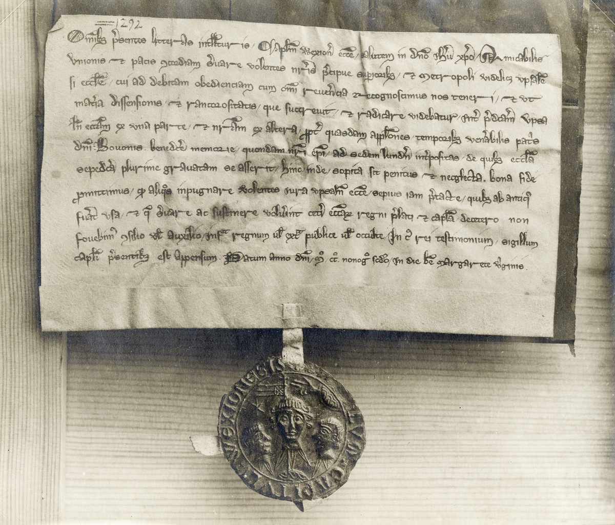 Brev med Växjö domkapitels äldsta sigill, daterat 1292.