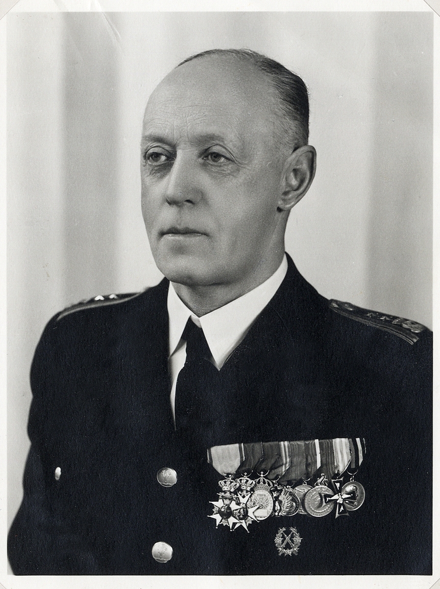 En medelålders man i uniform med ordnar och medaljer.
