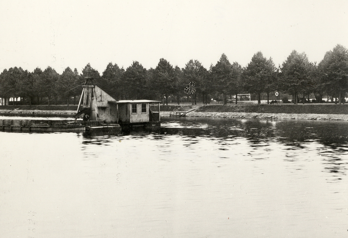 Ett mudderverk, kallat "Schenfeltska armadan", i Växjösjön, ca 1905.