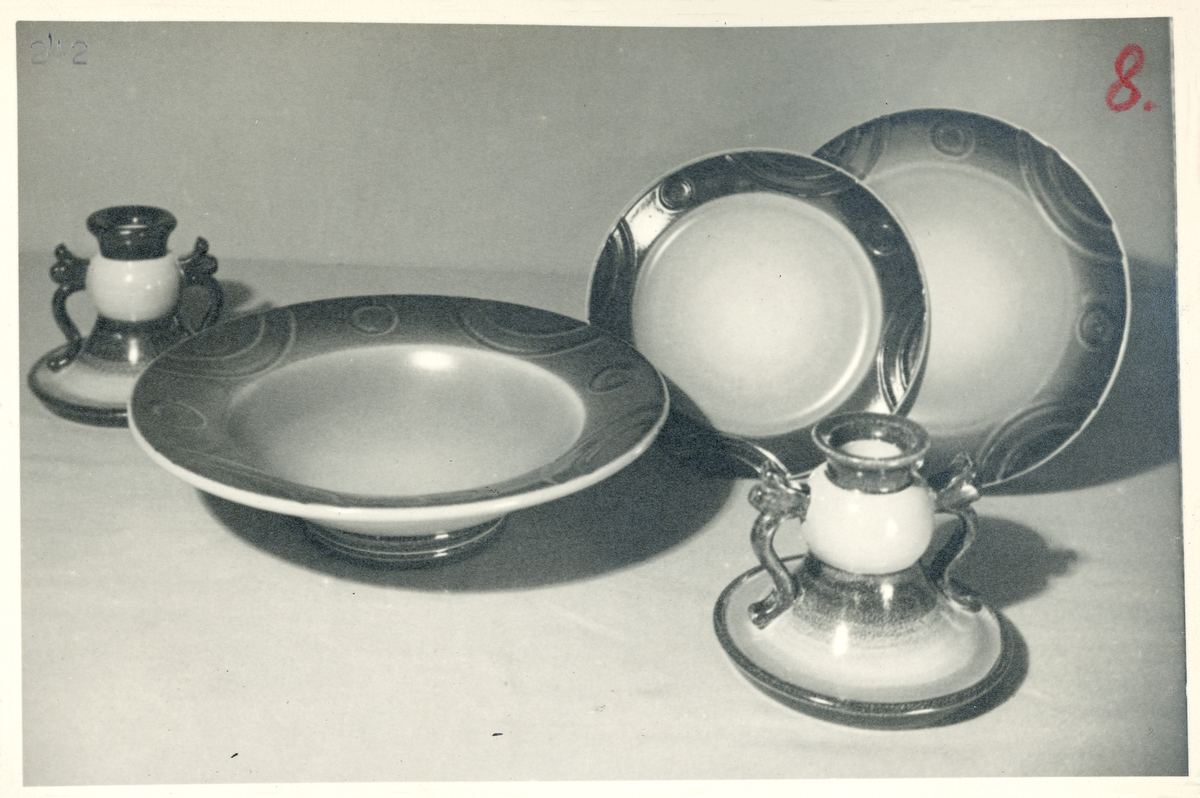 Ljusstakar, skål, assietter från Bo Fajans, 1900-talets mitt.