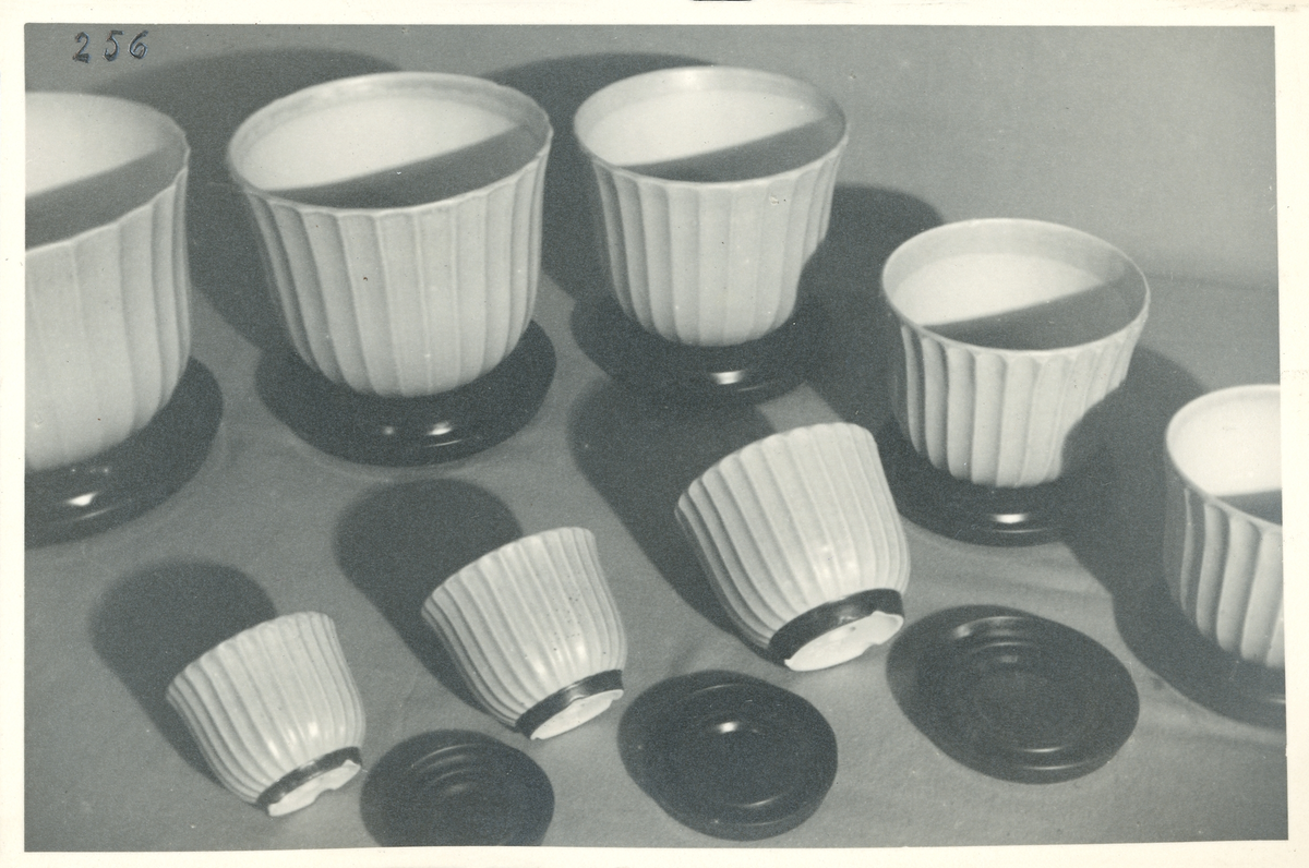 Tellus-krukan i olika storlekar från Bo Fajans, formgivare Ewald Dahlskog, 1900-talets mitt.