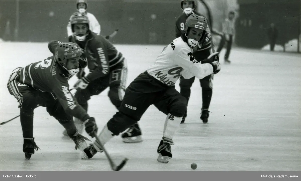 Bandylaget Kållereds SK spelar match. Idrottsanläggning och årtal är okända.