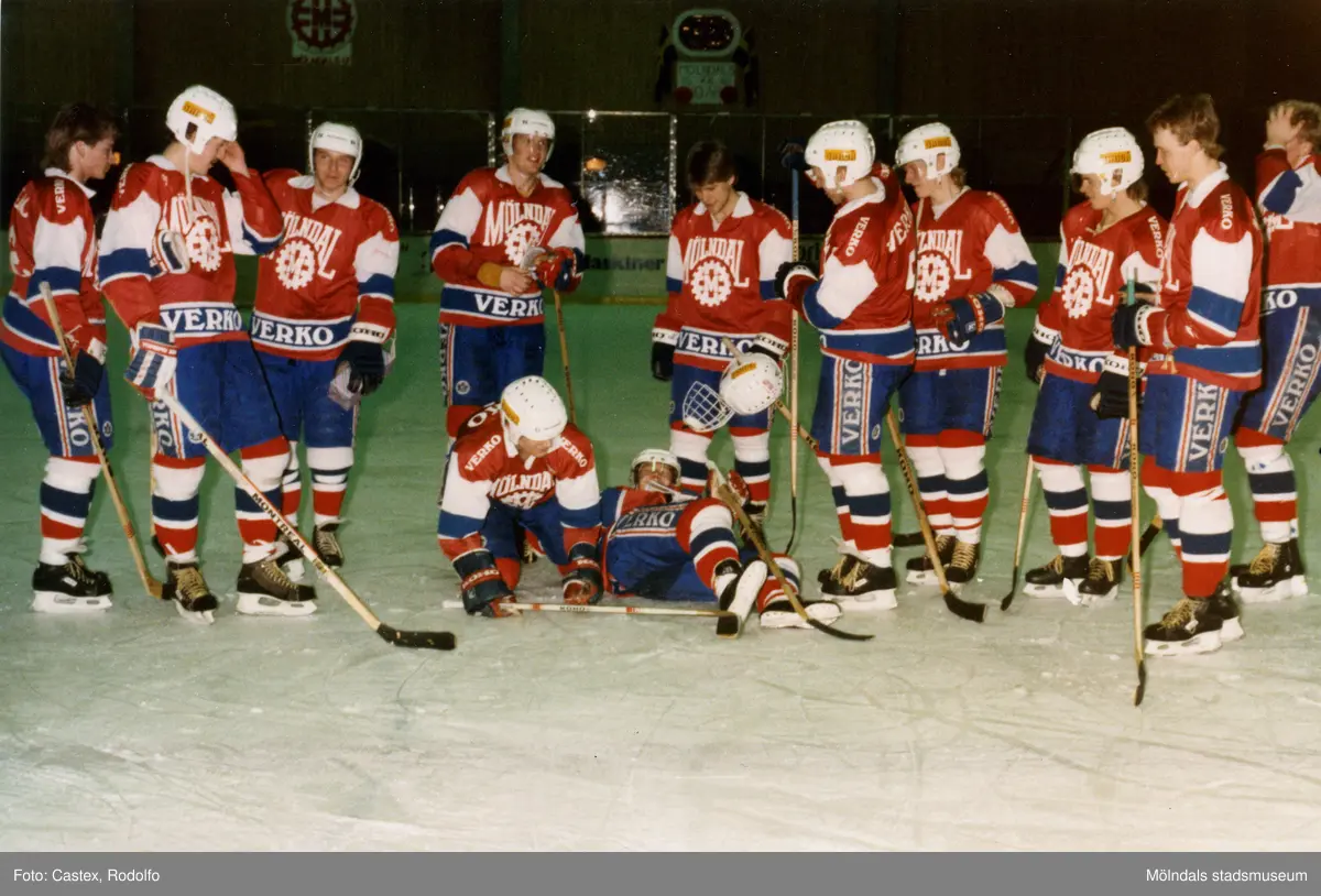 Lagfotografi av IF Mölndal Hockey i Mölndals ishall i Åby, Mölndal, år 1986.