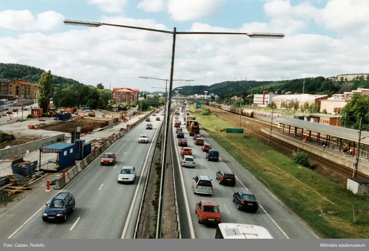 Trafik på Kungsbackaleden under EU-toppmötet år 2001. Vy mot norr från Mölndals Bro.