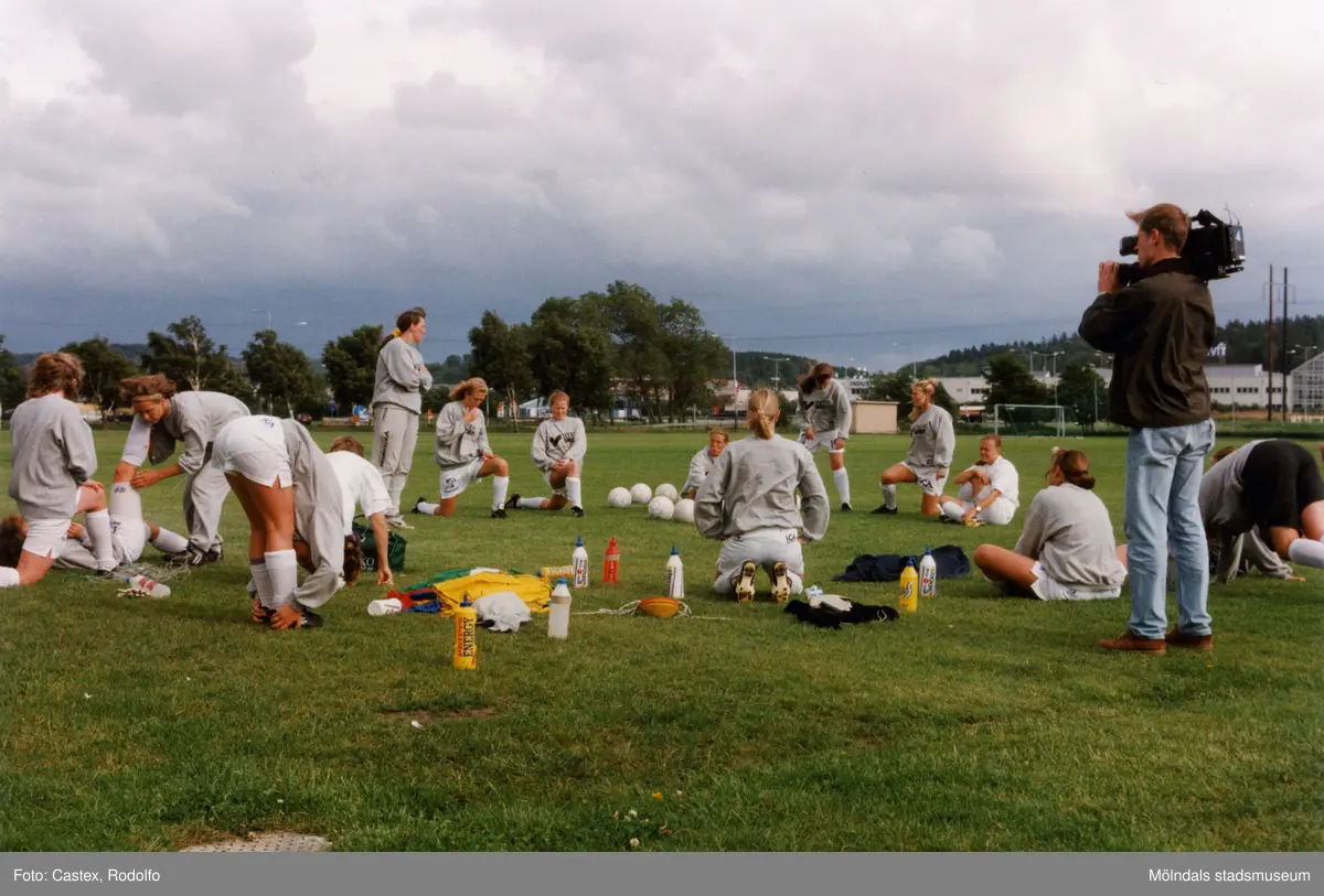 Fotbollslaget Jitex BK tränar på Åbyvallen i Åby, Mölndal, år 1996.