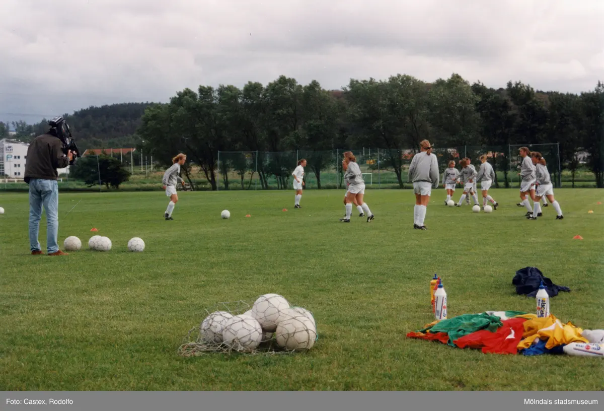 Fotbollslaget Jitex BK tränar på Åbyvallen i Åby, Mölndal, år 1996.