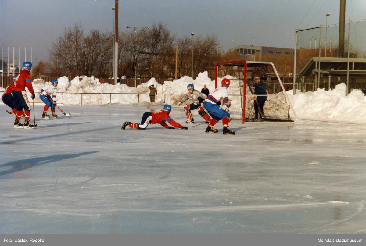 Bandylaget Kållereds SK spelar match på Åby isstadion i Mölndal, år 1986.