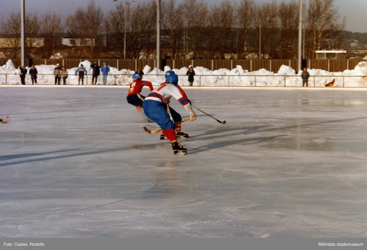 Bandylaget Kållereds SK spelar match på Åby isstadion i Mölndal, år 1986.