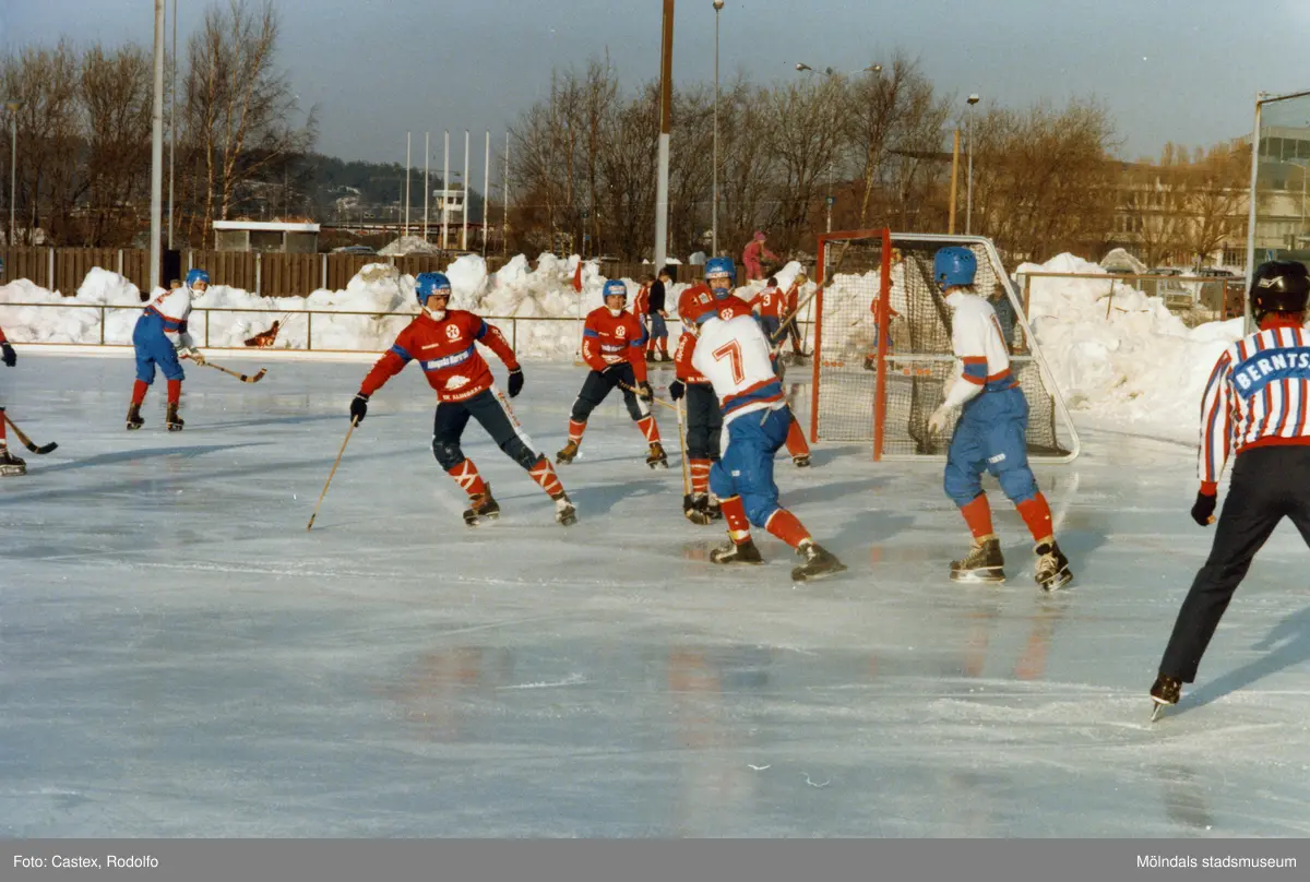 Bandylaget Kållereds SK spelar match på Åby isstadion i Mölndal, år 1986.