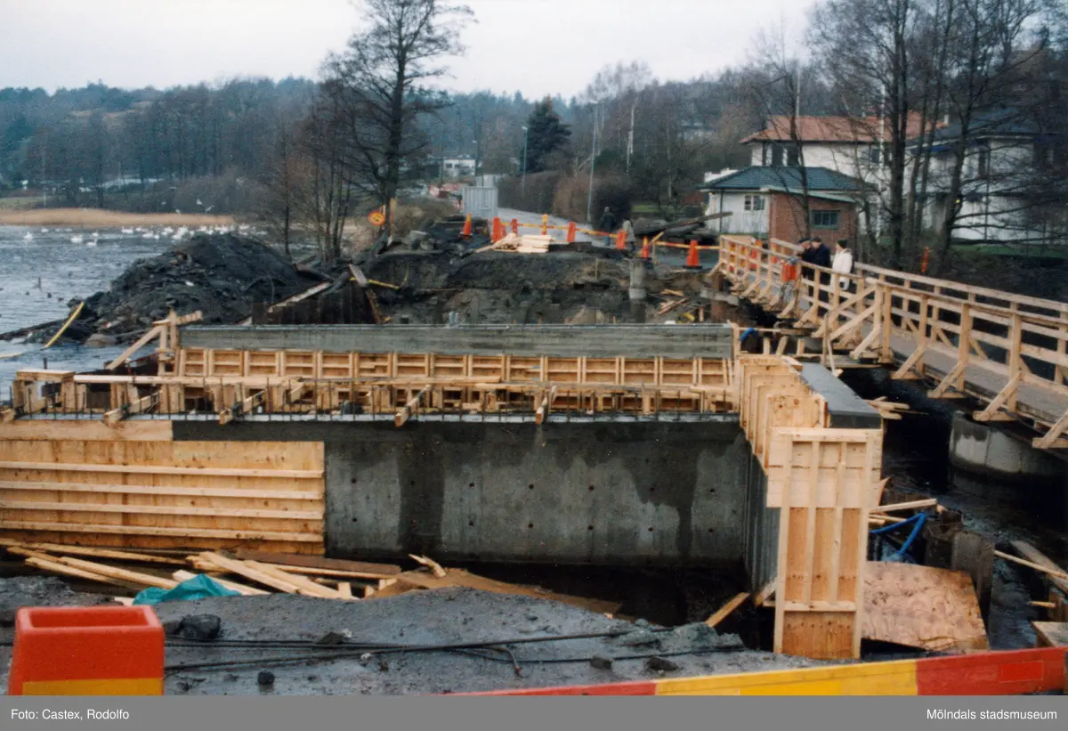 Byggnationen av Gunnebo Bro vid Stensjön i Mölndal, år 1998.