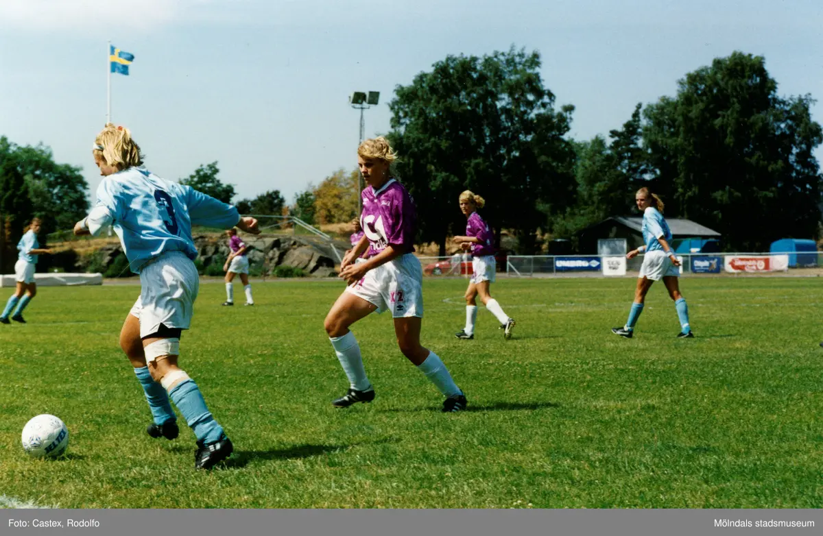 Fotbollslaget Jitex BK spelar match mot Malmö FF på Kvarnbyvallen i Mölndal den 27 juni 1992. Matchen slutade 1-2.