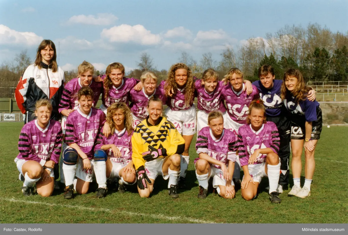 Kvarnbyvallen i Mölndal, april 1993. Lagbild av fotbollslaget Jitex BK.