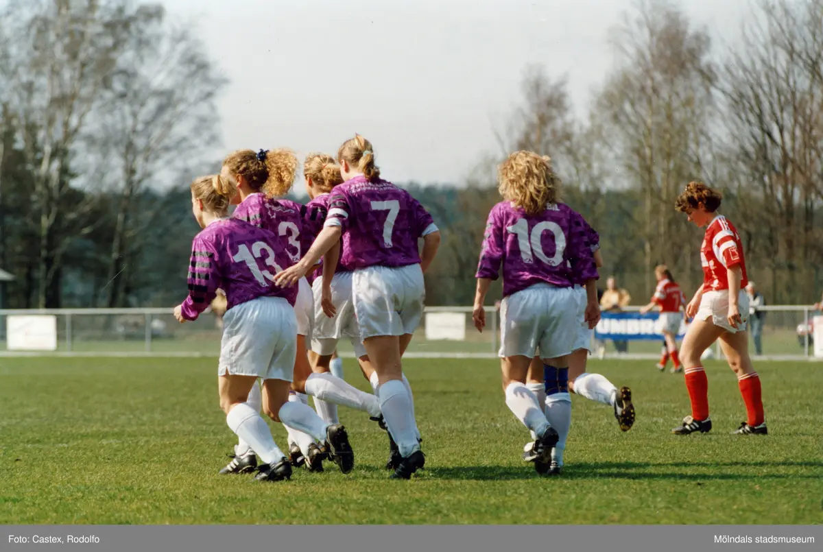 Fotbollslaget Jitex BK spelar match mot Mallbackens IF på Kvarnbyvallen i Mölndal, april 1993. Matchen slutade 2-1.