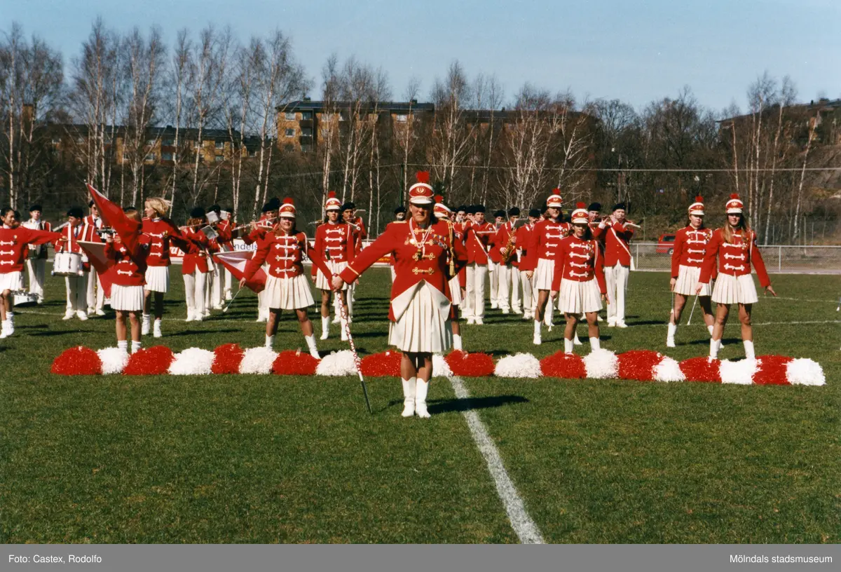 Kvarnbyvallen i Mölndal, år 1997. Mölndals Paradorkester underhåller på fotbollsplanen.