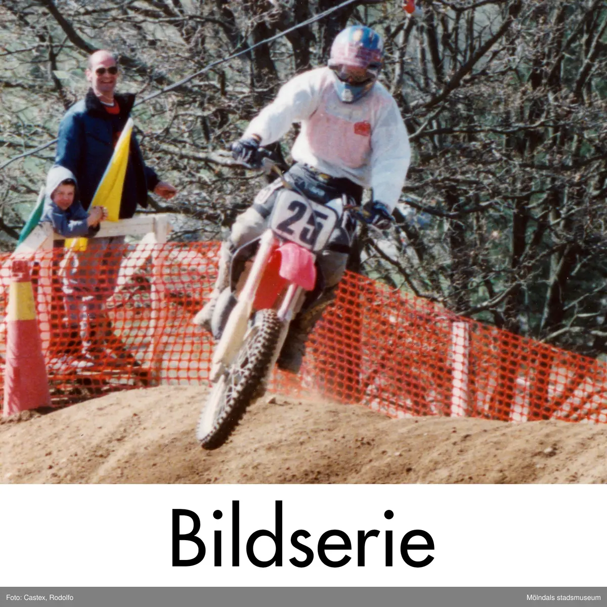 Serie om fyra fotografier som visar motocrosstävling på Blixåsbanan i Balltorp, Mölndal, i maj 1999.