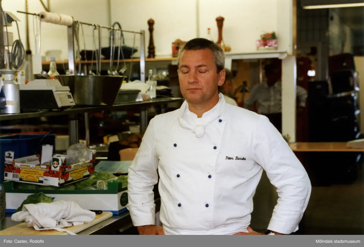 Köksmästare Peter Barske i restaurangköket på Åbytravet i Åby, Mölndal, den 19 september 1998.