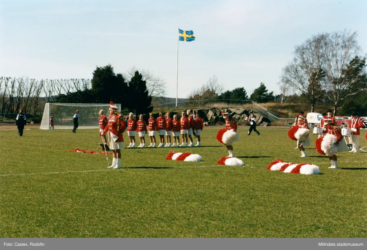 Kvarnbyvallen i Mölndal, år 1997. Fotbollslaget Jitex BK värmer upp inför en match mot Lotorps IF, vilken slutade med resultatet 0-1. Mölndals Paradorkester underhåller på fotbollsplanen.