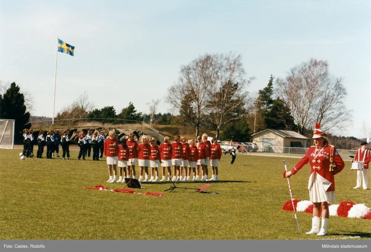 Kvarnbyvallen i Mölndal, år 1997. Fotbollslaget Jitex BK värmer upp inför en match mot Lotorps IF, vilken slutade med resultatet 0-1. Mölndals Paradorkester underhåller på fotbollsplanen.