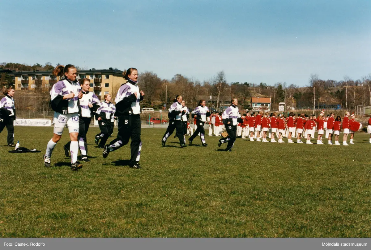Kvarnbyvallen i Mölndal, år 1997. Fotbollslaget Jitex BK värmer upp inför en match mot Lotorps IF, vilken slutade med resultatet 0-1. Mölndals Paradorkester underhåller på fotbollsplanen.