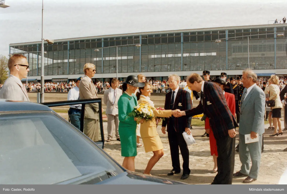 Travloppet Drottning Silvias Pokal på Åbytravet i Åby, Mölndal, i maj 1993. Drottning Silvia och kronprinsessan Victoria är på plats vid travbanan.