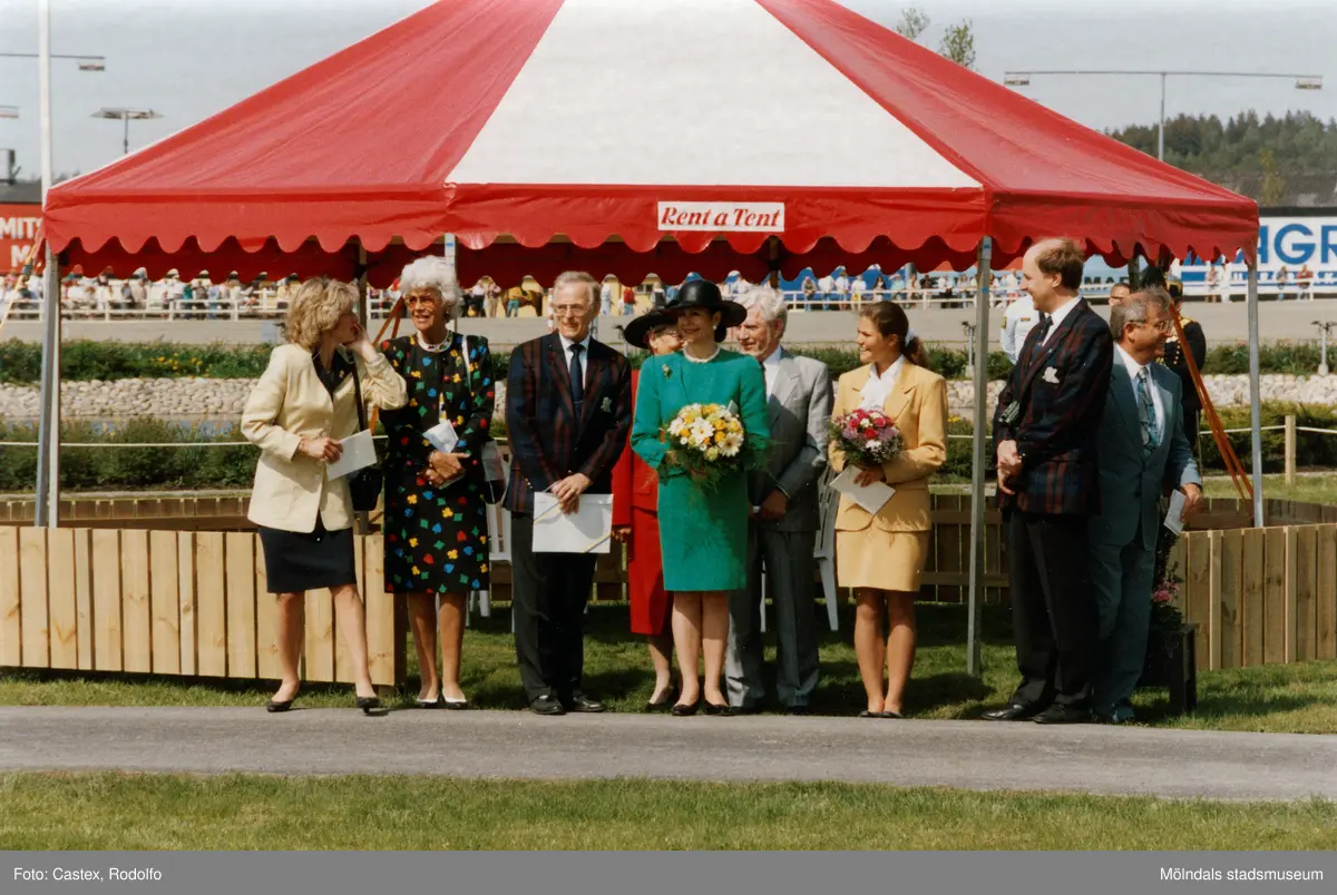 Travloppet Drottning Silvias Pokal på Åbytravet i Åby, Mölndal, i maj 1993. Drottning Silvia och kronprinsessan Victoria är på plats vid travbanan.