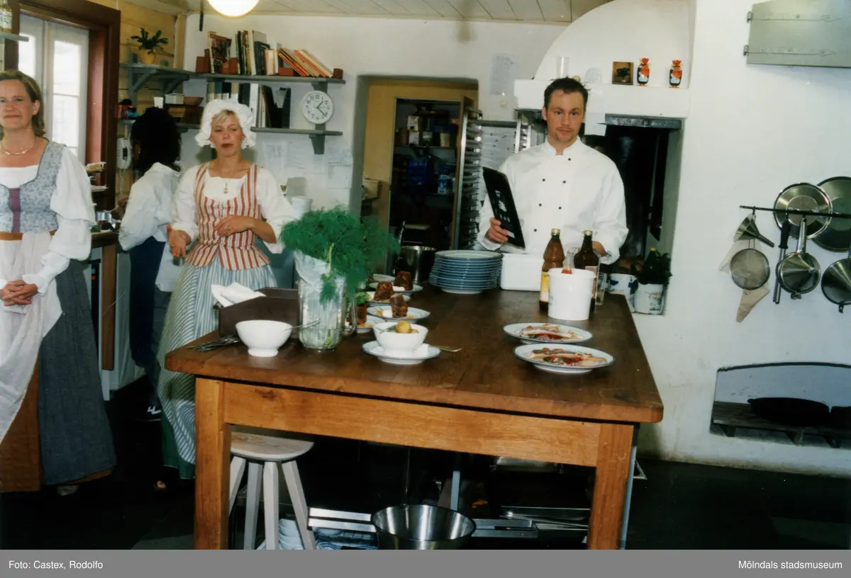Venezuelas ambassadör Sadio Garavini di Turno besöker Gunnebo slott i Mölndal, juni 1999. Personalen i restaurangens kök.