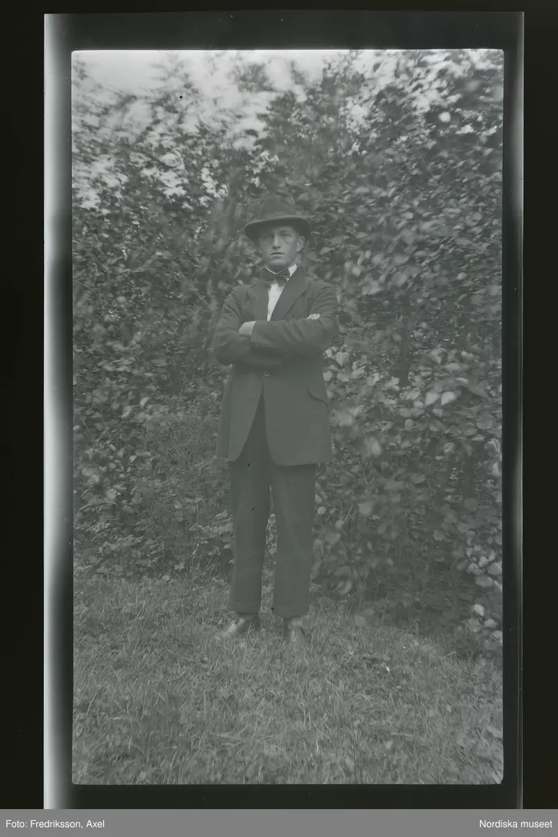 Porträtt av en ung man som står utomhus med armarna i kors.