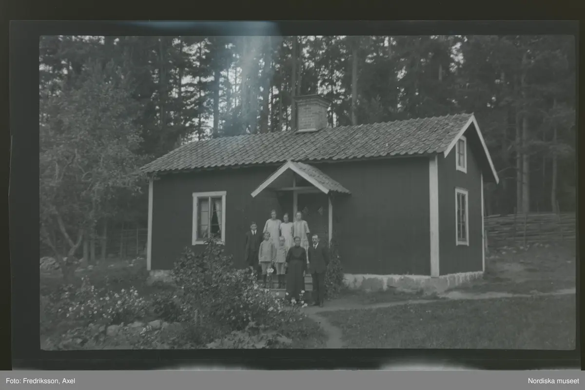 "Hushållstugan Emma o Teodor Bergstedt, Greta, Maja, Hilmer, Edvin."