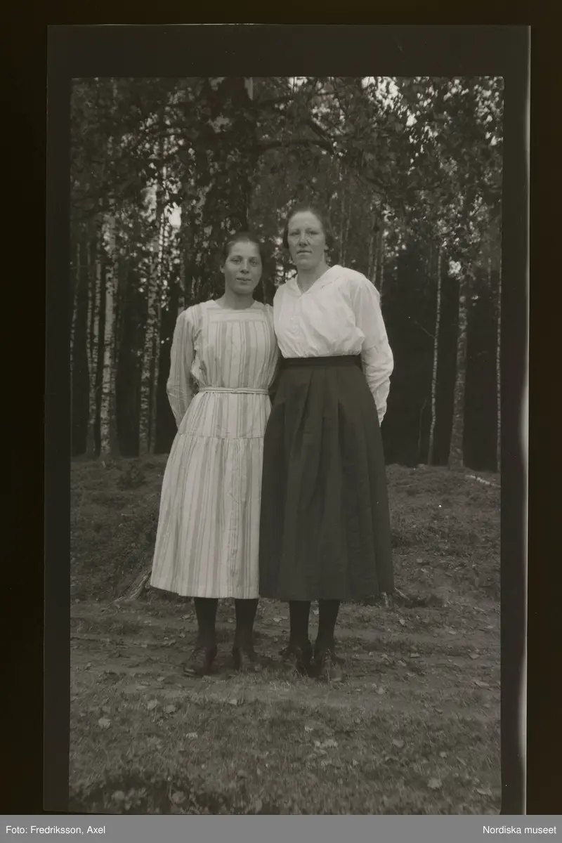 Två unga kvinnor porträtterade utomhus.