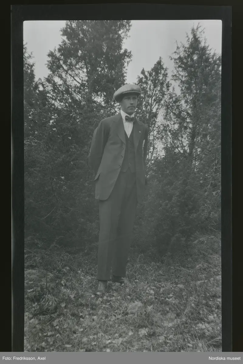 Porträtt av en målare i kostym och keps.