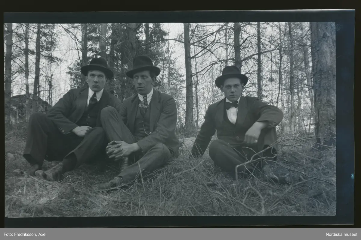 "Gösta Blomgren, smed David Karlsson traktorförare Evert Lundberg. Sågen, Fogelstad."