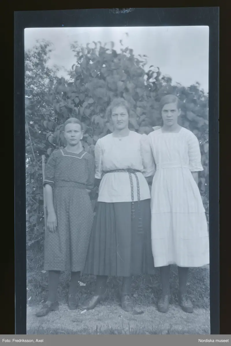 Porträtt av tre unga kvinnor.