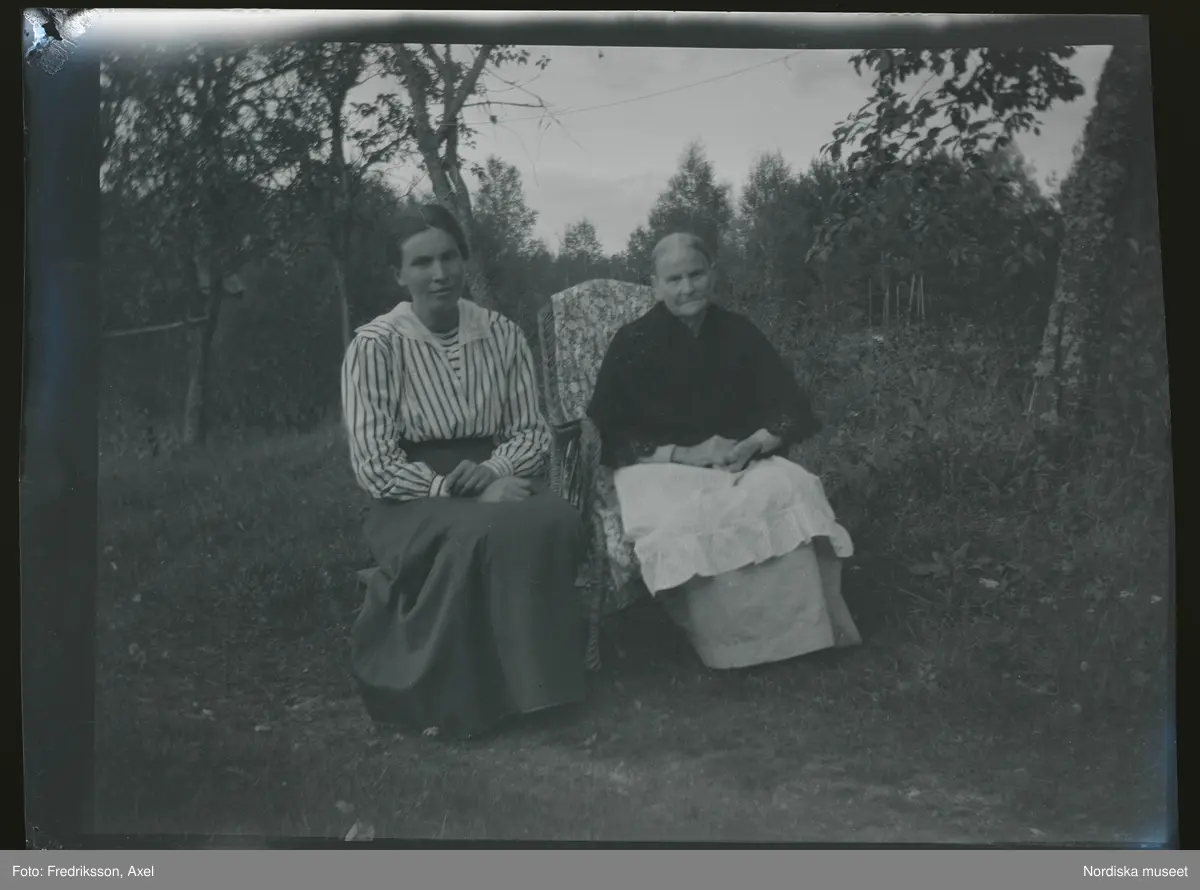Två kvinnor sitter utomhus.